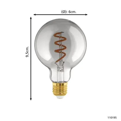 Eglo LED Globe E27 Filament Smokey 4W 100lm - 820 Zeer Warm Wit | Dimbaar - Vervangt 15W