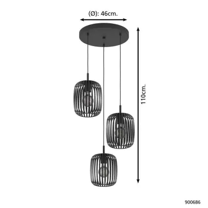 Eglo Pendelarmatuur Romazzina Staal Zwart | Geschikt voor 3x E27