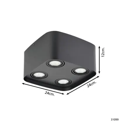 Eglo Plafond Spot Arenzano Staal Zwart 18.8W 1380lm - 830 Warm Wit | Dimbaar - Geschikt voor GU10