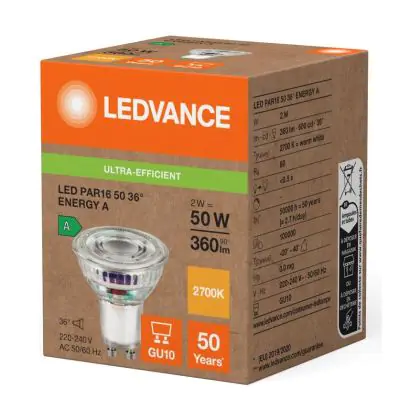 Ledvance LED PAR16 GU10 Reflector 2W 360lm 36D - 827 Zeer Warm Wit | Vervangt 50W