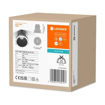 | Fabrikantnaam | LED SPOT RECESS TWIST PRO 70mm 5W 4000K White Black | |