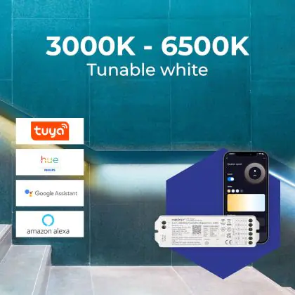 | Fabrikantnaam | Noxion Naga Dual White LED Strip Complete Set ZIGBEE IP20 SMD2835/120 24V 9.6W/m 5M/8mm/50mm | |