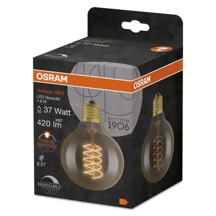 Osram Vintage 1906 LED E27 Globe Filament Goud 80mm 4.8W 420lm - 822 Zeer Warm Wit | Dimbaar