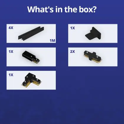| Fabrikantnaam | Complete L shaped 1-Phase Track Set Black – 2 x 2 meter incl. End Cap, Power Connector and L -Conne | |