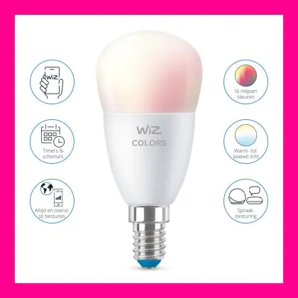 | Fabrikantnaam | WiZ Kogellamp - Slimme LED-Verlichting - Gekleurd en Wit Licht - E14 - 40W - Mat - Wi-Fi | |